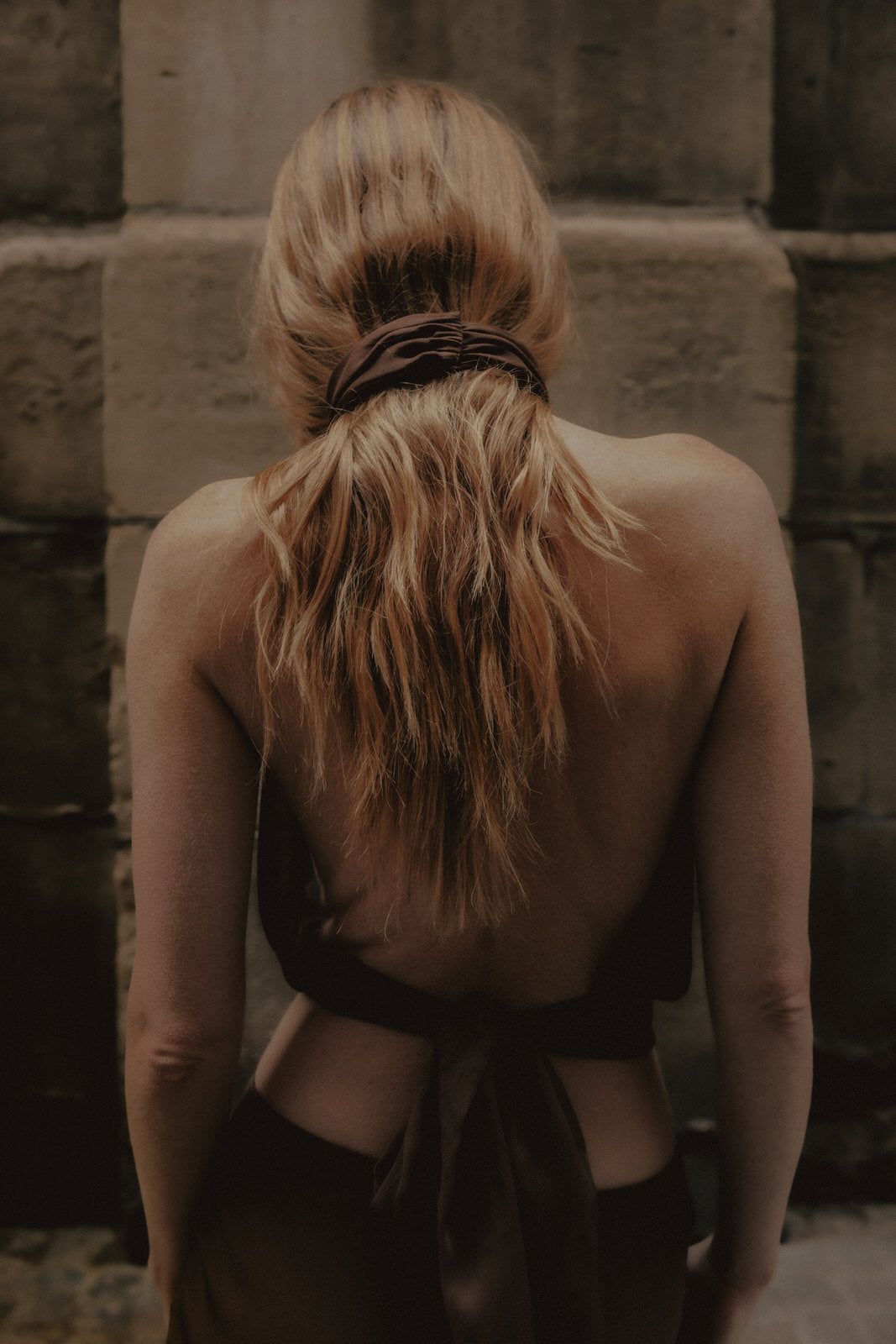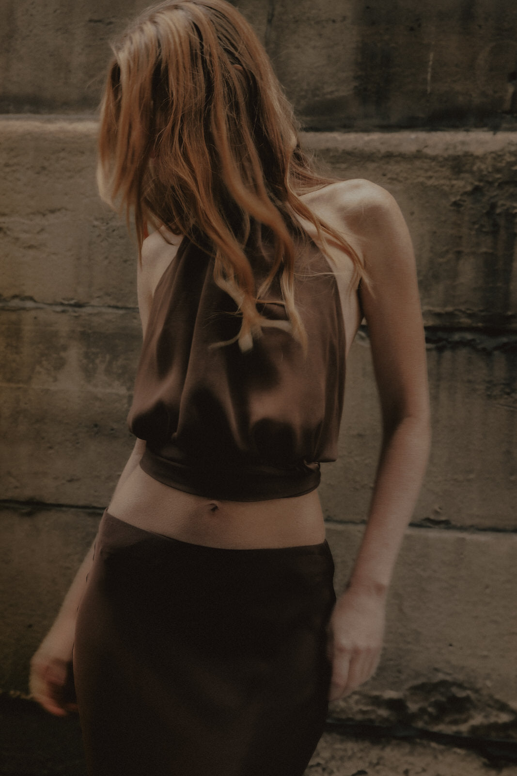 T neck neck georgette top with tie at back of waist for ease of adjustment. Skirt sold separately.